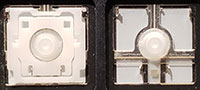 Our comparison table shows both the hinge shape as well as the same area without the hinge. Most alphanumeric keys will use a hinge shape located under the 'Normal Key' column. Larger keys (Enter, Backspace, etc.) will generally use hinges similar to those shown under the 'Large Key' column. Small keys (such as the top row function keys) will use hinges under the 'Small Key' column. Arrow key hinges may be horizontally mirrored. Bottom row hinge shapes and some larger keys may not be presented. We show only the most common hinge shapes that cover 90% of keys. If yours doesn't match or you are unsure in any way, do not guess! Simply contact us and we'll help you find the right part!
