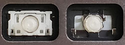 Our comparison table shows both the hinge shape as well as the same area without the hinge. Most alphanumeric keys will use a hinge shape located under the 'Normal Key' column. Larger keys (Enter, Backspace, etc.) will generally use hinges similar to those shown under the 'Large Key' column. Small keys (such as the top row function keys) will use hinges under the 'Small Key' column. Arrow key hinges may be horizontally mirrored. Bottom row hinge shapes and some larger keys may not be presented. We show only the most common hinge shapes that cover 90% of keys. If yours doesn't match or you are unsure in any way, do not guess! Simply contact us and we'll help you find the right part!