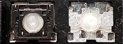 Our comparison table shows both the hinge shape as well as the same area without the hinge. Most alphanumeric keys will use a hinge shape located under the 'Normal Key' column. Larger keys (Enter, Backspace, etc.) will generally use hinges similar to those shown under the 'Large Key' column. Small keys (such as the top row function keys) will use hinges under the 'Small Key' column. Arrow key hinges may be horizontally mirrored. Bottom row hinge shapes and some larger keys may not be presented. We show only the most common hinge shapes that cover 90% of keys. If yours doesn't match or you are unsure in any way, do not guess! Simply contact us and we'll help you find the right part!