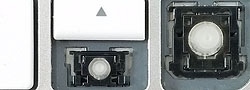Our comparison table shows both the hinge shape as well as the same area without the hinge. Most alphanumeric keys will use a hinge shape located under the 'Normal Key' column. Larger keys (Enter, Backspace, etc.) will generally use hinges similar to those shown under the 'Large Key' column. Small keys (such as the top row function keys) will use hinges under the 'Small Key' column. Arrow key hinges may be horizontally mirrored. Bottom row hinge shapes and some larger keys may not be presented. We show only the most common hinge shapes that cover 90% of keys. If yours doesn't match or you are unsure in any way, do not guess! Simply contact us and we'll help you find the right part!