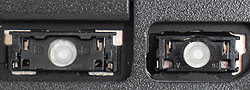 Our comparison table shows both the hinge shape as well as the same area without the hinge. Most alphanumeric keys will use a hinge shape located under the 'Normal Key' column. Larger keys (Enter, Backspace, etc.) will generally use hinges similar to those shown under the 'Large Key' column. Small keys (such as the top row function keys) will use hinges under the 'Small Key' column. Arrow key hinges may be horizontally mirrored. Bottom row hinge shapes and some larger keys may not be presented. We show only the most common hinge shapes that cover 90% of keys. If yours doesn't match or you are unsure in any way, do not guess! Simply contact us and we'll help you find the right part!