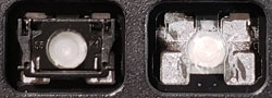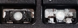 Our comparison table shows both the hinge shape as well as the same area without the hinge. Most alphanumeric keys will use a hinge shape located under the 'Normal Key' column. Larger keys (Enter, Backspace, etc.) will generally use hinges similar to those shown under the 'Large Key' column. Small keys (such as the top row function keys) will use hinges under the 'Small Key' column. Arrow key hinges may be horizontally mirrored. Bottom row hinge shapes and some larger keys may not be presented. We show only the most common hinge shapes that cover 90% of keys. If yours doesn't match or you are unsure in any way, do not guess! Simply contact us and we'll help you find the right part!