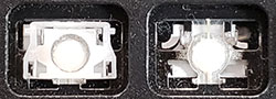 Our comparison table shows both the hinge shape as well as the same area without the hinge. Most alphanumeric keys will use a hinge shape located under the 'Normal Key' column. Larger keys (Enter, Backspace, etc.) will generally use hinges similar to those shown under the 'Large Key' column. Small keys (such as the top row function keys) will use hinges under the 'Small Key' column. Arrow key hinges may be horizontally mirrored. Bottom row hinge shapes and some larger keys may not be presented. We show only the most common hinge shapes that cover 90% of keys. If yours doesn't match or you are unsure in any way, do not guess! Simply contact us and we'll help you find the right part!