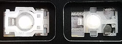 Our comparison table shows both the hinge shape as well as the same area without the hinge. Most alphanumeric keys will use a hinge shape located under the 'Normal Key' column. Larger keys (Enter, Backspace, etc.) will generally use hinges similar to those shown under the 'Large Key' column. Small keys (such as the top row function keys) will use hinges under the 'Small Key' column. Arrow key hinges may be horizontally mirrored. Bottom row hinge shapes and some larger keys may not be presented. We show only the most common hinge shapes that cover 90% of keys. If yours doesn't match or you are unsure in any way, do not guess! Simply contact us and we'll help you find the right part!