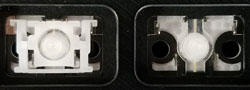Our comparison table shows both the hinge shape as well as the same area without the hinge. Most alphanumeric keys will use a hinge shape located under the 'Normal Key' column. Larger keys (Enter, Backspace, etc.) will generally use hinges similar to those shown under the 'Large Key' column. Small keys (such as the top row function keys) will use hinges under the 'Small Key' column. Arrow key hinges may be horizontally mirrored. Bottom row hinge shapes and some larger keys may not be presented. We show only the most common hinge shapes that cover 90% of keys. If yours doesn't match or you are unsure in any way, do not guess! Simply contact us and we'll help you find the right part!