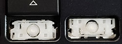Our comparison table shows both the hinge shape as well as the same area without the hinge. Most alphanumeric keys will use a hinge shape located under the 'Normal Key' column. Larger keys (Enter, Backspace, etc.) will generally use hinges similar to those shown under the 'Large Key' column. Small keys (such as the top row function keys) will use hinges under the 'Small Key' column. Arrow key hinges may be horizontally mirrored. Bottom row hinge shapes and some larger keys may not be presented. We show only the most common hinge shapes that cover 90% of keys. If yours doesn't match or you are unsure in any way, do not guess! Simply contact us and we'll help you find the right part!