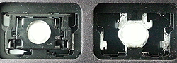 Our comparison table shows both the hinge shape as well as the same area without the hinge. Most alphanumeric keys will use a hinge shape located under the 'Normal Key' column. Larger keys (Enter, Backspace, etc.) will generally use hinges similar to those shown under the 'Large Key' column. Small keys (such as the top row function keys) will use hinges under the 'Small Key' column. Arrow key hinges may be horizontally mirrored. Bottom row hinge shapes and some larger keys may not be presented. We show only the most common hinge shapes that cover 90% of keys. If yours doesn't match or you are unsure in any way, do not guess! Simply contact us and we'll help you find the right part!