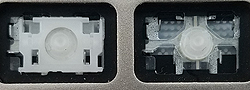 Our comparison table shows both the hinge shape as well as the same area without the hinge. Most alphanumeric keys will use a hinge shape located under the 'Normal Key' column. Larger keys (Enter, Backspace, etc.) will generally use hinges similar to those shown under the 'Large Key' column. Small keys (such as the top row function keys) will use hinges under the 'Small Key' column. Arrow key hinges may be horizontally mirrored. Bottom row hinge shapes and some larger keys may not be presented. We show only the most common hinge shapes that cover 90% of keys. If yours doesn't match or you are unsure in any way, do not guess! Simply contact us and we'll help you find the right part!