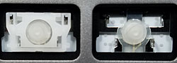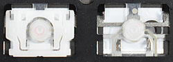 Our comparison table shows both the hinge shape as well as the same area without the hinge. Most alphanumeric keys will use a hinge shape located under the 'Normal Key' column. Larger keys (Enter, Backspace, etc.) will generally use hinges similar to those shown under the 'Large Key' column. Small keys (such as the top row function keys) will use hinges under the 'Small Key' column. Arrow key hinges may be horizontally mirrored. Bottom row hinge shapes and some larger keys may not be presented. We show only the most common hinge shapes that cover 90% of keys. If yours doesn't match or you are unsure in any way, do not guess! Simply contact us and we'll help you find the right part!