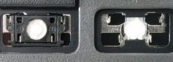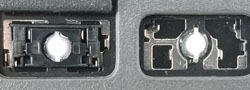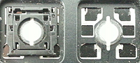 Our comparison table shows both the hinge shape as well as the same area without the hinge. Most alphanumeric keys will use a hinge shape located under the 'Normal Key' column. Larger keys (Enter, Backspace, etc.) will generally use hinges similar to those shown under the 'Large Key' column. Small keys (such as the top row function keys) will use hinges under the 'Small Key' column. Arrow key hinges may be horizontally mirrored. Bottom row hinge shapes and some larger keys may not be presented. We show only the most common hinge shapes that cover 90% of keys. If yours doesn't match or you are unsure in any way, do not guess! Simply contact us and we'll help you find the right part!