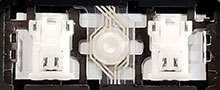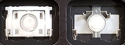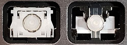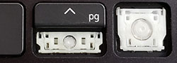 Our comparison table shows both the hinge shape as well as the same area without the hinge. Most alphanumeric keys will use a hinge shape located under the 'Normal Key' column. Larger keys (Enter, Backspace, etc.) will generally use hinges similar to those shown under the 'Large Key' column. Small keys (such as the top row function keys) will use hinges under the 'Small Key' column. Arrow key hinges may be horizontally mirrored. Bottom row hinge shapes and some larger keys may not be presented. We show only the most common hinge shapes that cover 90% of keys. If yours doesn't match or you are unsure in any way, do not guess! Simply contact us and we'll help you find the right part!