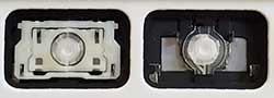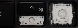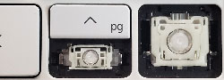 Our comparison table shows both the hinge shape as well as the same area without the hinge. Most alphanumeric keys will use a hinge shape located under the 'Normal Key' column. Larger keys (Enter, Backspace, etc.) will generally use hinges similar to those shown under the 'Large Key' column. Small keys (such as the top row function keys) will use hinges under the 'Small Key' column. Arrow key hinges may be horizontally mirrored. Bottom row hinge shapes and some larger keys may not be presented. We show only the most common hinge shapes that cover 90% of keys. If yours doesn't match or you are unsure in any way, do not guess! Simply contact us and we'll help you find the right part!