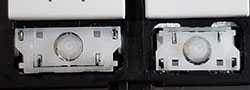 Our comparison table shows both the hinge shape as well as the same area without the hinge. Most alphanumeric keys will use a hinge shape located under the 'Normal Key' column. Larger keys (Enter, Backspace, etc.) will generally use hinges similar to those shown under the 'Large Key' column. Small keys (such as the top row function keys) will use hinges under the 'Small Key' column. Arrow key hinges may be horizontally mirrored. Bottom row hinge shapes and some larger keys may not be presented. We show only the most common hinge shapes that cover 90% of keys. If yours doesn't match or you are unsure in any way, do not guess! Simply contact us and we'll help you find the right part!