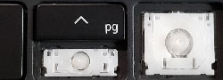 Our comparison table shows both the hinge shape as well as the same area without the hinge. Most alphanumeric keys will use a hinge shape located under the 'Normal Key' column. Larger keys (Enter, Backspace, etc.) will generally use hinges similar to those shown under the 'Large Key' column. Small keys (such as the top row function keys) will use hinges under the 'Small Key' column. Arrow key hinges may be horizontally mirrored. Bottom row hinge shapes and some larger keys may not be presented. We show only the most common hinge shapes that cover 90% of keys. If yours doesn't match or you are unsure in any way, do not guess! Simply contact us and we'll help you find the right part!