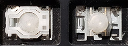 Our comparison table shows both the hinge shape as well as the same area without the hinge. Most alphanumeric keys will use a hinge shape located under the 'Normal Key' column. Larger keys (Enter, Backspace, etc.) will generally use hinges similar to those shown under the 'Large Key' column. Small keys (such as the top row function keys) will use hinges under the 'Small Key' column. Arrow key hinges may be horizontally mirrored. Bottom row hinge shapes and some larger keys may not be presented. We show only the most common hinge shapes that cover 90% of keys. If yours doesn't match or you are unsure in any way, do not guess! Simply contact us and we'll help you find the right part!
