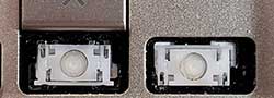 Our comparison table shows both the hinge shape as well as the same area without the hinge. Most alphanumeric keys will use a hinge shape located under the 'Normal Key' column. Larger keys (Enter, Backspace, etc.) will generally use hinges similar to those shown under the 'Large Key' column. Small keys (such as the top row function keys) will use hinges under the 'Small Key' column. Arrow key hinges may be horizontally mirrored. Bottom row hinge shapes and some larger keys may not be presented. We show only the most common hinge shapes that cover 90% of keys. If yours doesn't match or you are unsure in any way, do not guess! Simply contact us and we'll help you find the right part!