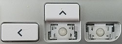 Our comparison table shows both the hinge shape as well as the same area without the hinge. Most alphanumeric keys will use a hinge shape located under the 'Normal Key' column. Larger keys (Enter, Backspace, etc.) will generally use hinges similar to those shown under the 'Large Key' column. Small keys (such as the top row function keys) will use hinges under the 'Small Key' column. Arrow key hinges may be horizontally mirrored. Bottom row hinge shapes and some larger keys may not be presented. We show only the most common hinge shapes that cover 90% of keys. If yours doesn't match or you are unsure in any way, do not guess! Simply contact us and we'll help you find the right part!