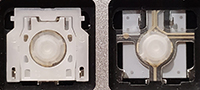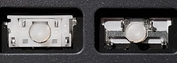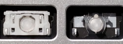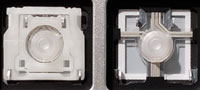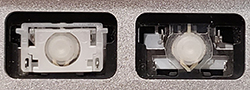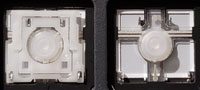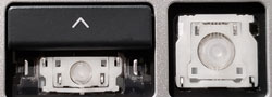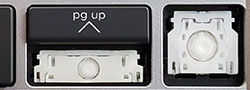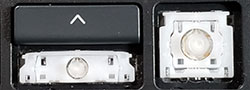 Our comparison table shows both the hinge shape as well as the same area without the hinge. Most alphanumeric keys will use a hinge shape located under the 'Normal Key' column. Larger keys (Enter, Backspace, etc.) will generally use hinges similar to those shown under the 'Large Key' column. Small keys (such as the top row function keys) will use hinges under the 'Small Key' column. Arrow key hinges may be horizontally mirrored. Bottom row hinge shapes and some larger keys may not be presented. We show only the most common hinge shapes that cover 90% of keys. If yours doesn't match or you are unsure in any way, do not guess! Simply contact us and we'll help you find the right part!