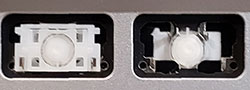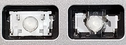 Our comparison table shows both the hinge shape as well as the same area without the hinge. Most alphanumeric keys will use a hinge shape located under the 'Normal Key' column. Larger keys (Enter, Backspace, etc.) will generally use hinges similar to those shown under the 'Large Key' column. Small keys (such as the top row function keys) will use hinges under the 'Small Key' column. Arrow key hinges may be horizontally mirrored. Bottom row hinge shapes and some larger keys may not be presented. We show only the most common hinge shapes that cover 90% of keys. If yours doesn't match or you are unsure in any way, do not guess! Simply contact us and we'll help you find the right part!
