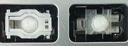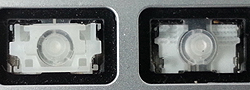 Our comparison table shows both the hinge shape as well as the same area without the hinge. Most alphanumeric keys will use a hinge shape located under the 'Normal Key' column. Larger keys (Enter, Backspace, etc.) will generally use hinges similar to those shown under the 'Large Key' column. Small keys (such as the top row function keys) will use hinges under the 'Small Key' column. Arrow key hinges may be horizontally mirrored. Bottom row hinge shapes and some larger keys may not be presented. We show only the most common hinge shapes that cover 90% of keys. If yours doesn't match or you are unsure in any way, do not guess! Simply contact us and we'll help you find the right part!