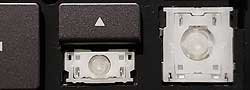 Our comparison table shows both the hinge shape as well as the same area without the hinge. Most alphanumeric keys will use a hinge shape located under the 'Normal Key' column. Larger keys (Enter, Backspace, etc.) will generally use hinges similar to those shown under the 'Large Key' column. Small keys (such as the top row function keys) will use hinges under the 'Small Key' column. Arrow key hinges may be horizontally mirrored. Bottom row hinge shapes and some larger keys may not be presented. We show only the most common hinge shapes that cover 90% of keys. If yours doesn't match or you are unsure in any way, do not guess! Simply contact us and we'll help you find the right part!