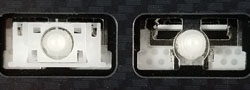 Our comparison table shows both the hinge shape as well as the same area without the hinge. Most alphanumeric keys will use a hinge shape located under the 'Normal Key' column. Larger keys (Enter, Backspace, etc.) will generally use hinges similar to those shown under the 'Large Key' column. Small keys (such as the top row function keys) will use hinges under the 'Small Key' column. Arrow key hinges may be horizontally mirrored. Bottom row hinge shapes and some larger keys may not be presented. We show only the most common hinge shapes that cover 90% of keys. If yours doesn't match or you are unsure in any way, do not guess! Simply contact us and we'll help you find the right part!