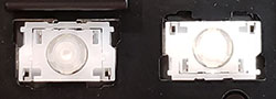 Our comparison table shows both the hinge shape as well as the same area without the hinge. Most alphanumeric keys will use a hinge shape located under the 'Normal Key' column. Larger keys (Enter, Backspace, etc.) will generally use hinges similar to those shown under the 'Large Key' column. Small keys (such as the top row function keys) will use hinges under the 'Small Key' column. Arrow key hinges may be horizontally mirrored. Bottom row hinge shapes and some larger keys may not be presented. We show only the most common hinge shapes that cover 90% of keys. If yours doesn't match or you are unsure in any way, do not guess! Simply contact us and we'll help you find the right part!
