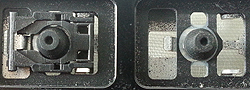 Our comparison table shows both the hinge shape as well as the same area without the hinge. Most alphanumeric keys will use a hinge shape located under the 'Normal Key' column. Larger keys (Enter, Backspace, etc.) will generally use hinges similar to those shown under the 'Large Key' column. Small keys (such as the top row function keys) will use hinges under the 'Small Key' column. Arrow key hinges may be horizontally mirrored. Bottom row hinge shapes and some larger keys may not be presented. We show only the most common hinge shapes that cover 90% of keys. If yours doesn't match or you are unsure in any way, do not guess! Simply contact us and we'll help you find the right part!