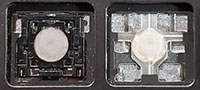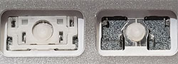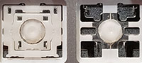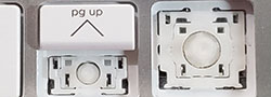 Our comparison table shows both the hinge shape as well as the same area without the hinge. Most alphanumeric keys will use a hinge shape located under the 'Normal Key' column. Larger keys (Enter, Backspace, etc.) will generally use hinges similar to those shown under the 'Large Key' column. Small keys (such as the top row function keys) will use hinges under the 'Small Key' column. Arrow key hinges may be horizontally mirrored. Bottom row hinge shapes and some larger keys may not be presented. We show only the most common hinge shapes that cover 90% of keys. If yours doesn't match or you are unsure in any way, do not guess! Simply contact us and we'll help you find the right part!