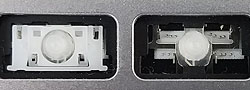 Our comparison table shows both the hinge shape as well as the same area without the hinge. Most alphanumeric keys will use a hinge shape located under the 'Normal Key' column. Larger keys (Enter, Backspace, etc.) will generally use hinges similar to those shown under the 'Large Key' column. Small keys (such as the top row function keys) will use hinges under the 'Small Key' column. Arrow key hinges may be horizontally mirrored. Bottom row hinge shapes and some larger keys may not be presented. We show only the most common hinge shapes that cover 90% of keys. If yours doesn't match or you are unsure in any way, do not guess! Simply contact us and we'll help you find the right part!