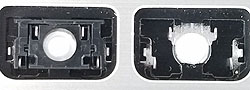Our comparison table shows both the hinge shape as well as the same area without the hinge. Most alphanumeric keys will use a hinge shape located under the 'Normal Key' column. Larger keys (Enter, Backspace, etc.) will generally use hinges similar to those shown under the 'Large Key' column. Small keys (such as the top row function keys) will use hinges under the 'Small Key' column. Arrow key hinges may be horizontally mirrored. Bottom row hinge shapes and some larger keys may not be presented. We show only the most common hinge shapes that cover 90% of keys. If yours doesn't match or you are unsure in any way, do not guess! Simply contact us and we'll help you find the right part!