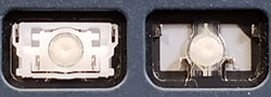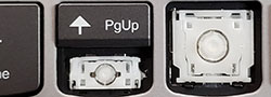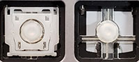 Our comparison table shows both the hinge shape as well as the same area without the hinge. Most alphanumeric keys will use a hinge shape located under the 'Normal Key' column. Larger keys (Enter, Backspace, etc.) will generally use hinges similar to those shown under the 'Large Key' column. Small keys (such as the top row function keys) will use hinges under the 'Small Key' column. Arrow key hinges may be horizontally mirrored. Bottom row hinge shapes and some larger keys may not be presented. We show only the most common hinge shapes that cover 90% of keys. If yours doesn't match or you are unsure in any way, do not guess! Simply contact us and we'll help you find the right part!