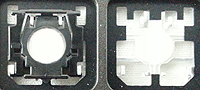 Our comparison table shows both the hinge shape as well as the same area without the hinge. Most alphanumeric keys will use a hinge shape located under the 'Normal Key' column. Larger keys (Enter, Backspace, etc.) will generally use hinges similar to those shown under the 'Large Key' column. Small keys (such as the top row function keys) will use hinges under the 'Small Key' column. Arrow key hinges may be horizontally mirrored. Bottom row hinge shapes and some larger keys may not be presented. We show only the most common hinge shapes that cover 90% of keys. If yours doesn't match or you are unsure in any way, do not guess! Simply contact us and we'll help you find the right part!