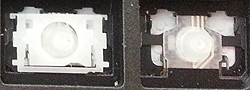 Our comparison table shows both the hinge shape as well as the same area without the hinge. Most alphanumeric keys will use a hinge shape located under the 'Normal Key' column. Larger keys (Enter, Backspace, etc.) will generally use hinges similar to those shown under the 'Large Key' column. Small keys (such as the top row function keys) will use hinges under the 'Small Key' column. Arrow key hinges may be horizontally mirrored. Bottom row hinge shapes and some larger keys may not be presented. We show only the most common hinge shapes that cover 90% of keys. If yours doesn't match or you are unsure in any way, do not guess! Simply contact us and we'll help you find the right part!
