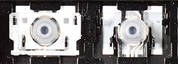 Our comparison table shows both the hinge shape as well as the same area without the hinge. Most alphanumeric keys will use a hinge shape located under the 'Normal Key' column. Larger keys (Enter, Backspace, etc.) will generally use hinges similar to those shown under the 'Large Key' column. Small keys (such as the top row function keys) will use hinges under the 'Small Key' column. Arrow key hinges may be horizontally mirrored. Bottom row hinge shapes and some larger keys may not be presented. We show only the most common hinge shapes that cover 90% of keys. If yours doesn't match or you are unsure in any way, do not guess! Simply contact us and we'll help you find the right part!