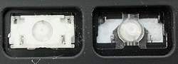 Our comparison table shows both the hinge shape as well as the same area without the hinge. Most alphanumeric keys will use a hinge shape located under the 'Normal Key' column. Larger keys (Enter, Backspace, etc.) will generally use hinges similar to those shown under the 'Large Key' column. Small keys (such as the top row function keys) will use hinges under the 'Small Key' column. Arrow key hinges may be horizontally mirrored. Bottom row hinge shapes and some larger keys may not be presented. We show only the most common hinge shapes that cover 90% of keys. If yours doesn't match or you are unsure in any way, do not guess! Simply contact us and we'll help you find the right part!