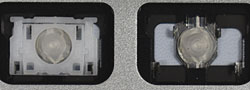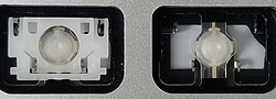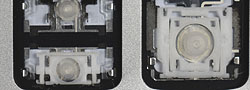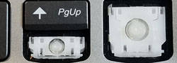 Our comparison table shows both the hinge shape as well as the same area without the hinge. Most alphanumeric keys will use a hinge shape located under the 'Normal Key' column. Larger keys (Enter, Backspace, etc.) will generally use hinges similar to those shown under the 'Large Key' column. Small keys (such as the top row function keys) will use hinges under the 'Small Key' column. Arrow key hinges may be horizontally mirrored. Bottom row hinge shapes and some larger keys may not be presented. We show only the most common hinge shapes that cover 90% of keys. If yours doesn't match or you are unsure in any way, do not guess! Simply contact us and we'll help you find the right part!
