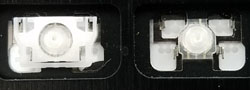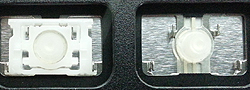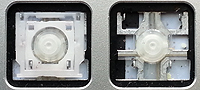 Our comparison table shows both the hinge shape as well as the same area without the hinge. Most alphanumeric keys will use a hinge shape located under the 'Normal Key' column. Larger keys (Enter, Backspace, etc.) will generally use hinges similar to those shown under the 'Large Key' column. Small keys (such as the top row function keys) will use hinges under the 'Small Key' column. Arrow key hinges may be horizontally mirrored. Bottom row hinge shapes and some larger keys may not be presented. We show only the most common hinge shapes that cover 90% of keys. If yours doesn't match or you are unsure in any way, do not guess! Simply contact us and we'll help you find the right part!