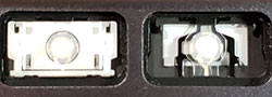 Our comparison table shows both the hinge shape as well as the same area without the hinge. Most alphanumeric keys will use a hinge shape located under the 'Normal Key' column. Larger keys (Enter, Backspace, etc.) will generally use hinges similar to those shown under the 'Large Key' column. Small keys (such as the top row function keys) will use hinges under the 'Small Key' column. Arrow key hinges may be horizontally mirrored. Bottom row hinge shapes and some larger keys may not be presented. We show only the most common hinge shapes that cover 90% of keys. If yours doesn't match or you are unsure in any way, do not guess! Simply contact us and we'll help you find the right part!